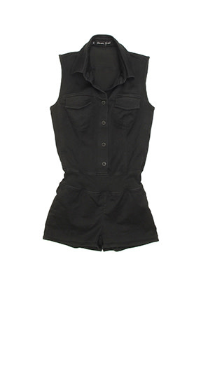 Super kurzer strechiger Jeans-Overall mit angeschnittenen Hotpants mit Seitentaschen, einem weichen Bördchen, das die Hose auf der Hüfte hält, Knopfverschluss, Chemisekragen und Brusttaschen. Das perfekte Kleidungsstück um schöne Sommerbeine zur wohl verdienten Geltung zu bringen.