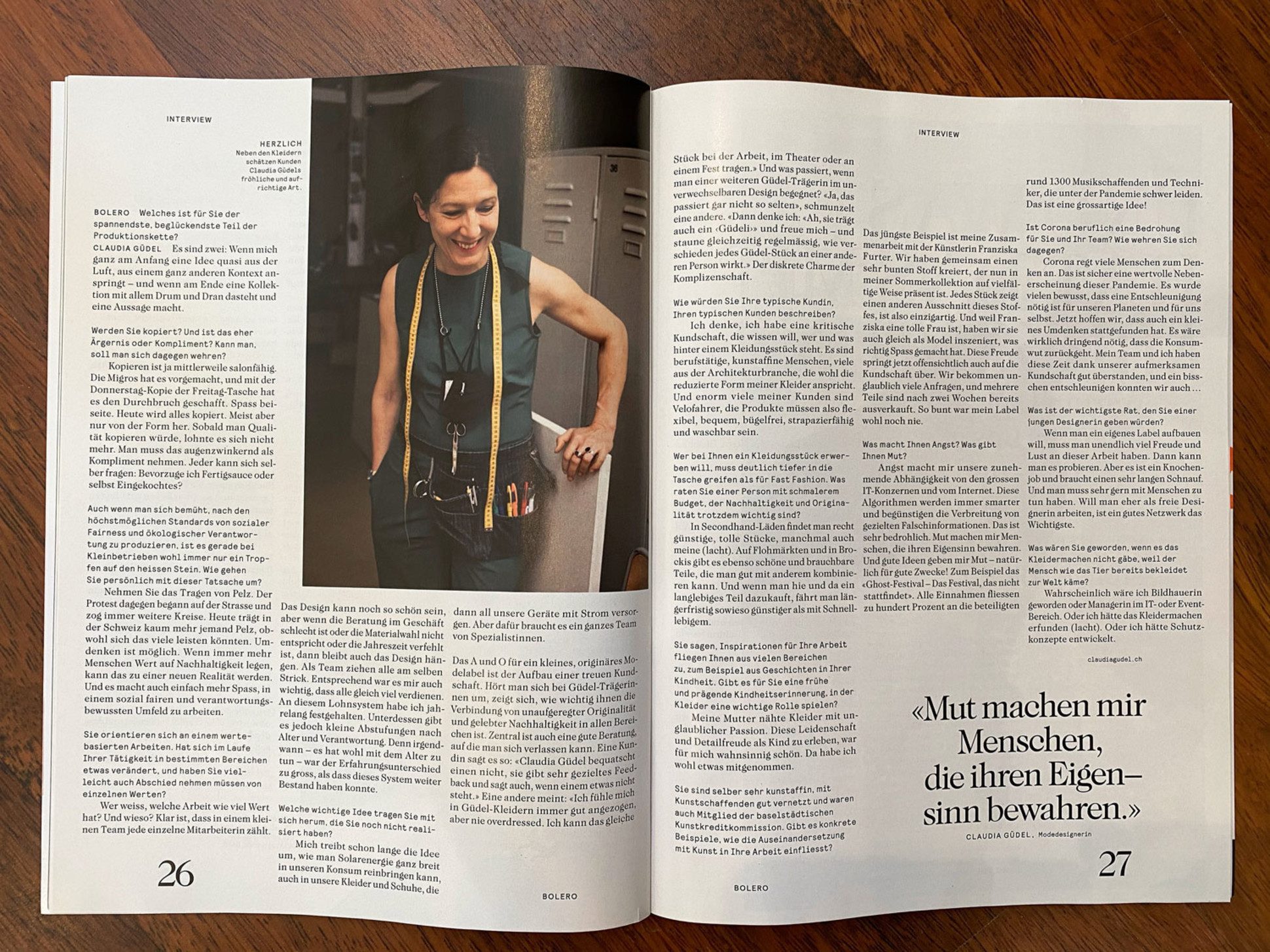 Das BOLERO Magazin hat Claudia Güdel zu einem Gespräch eingeladen und wir sagen Vielen Dank für den tollen Artikel.