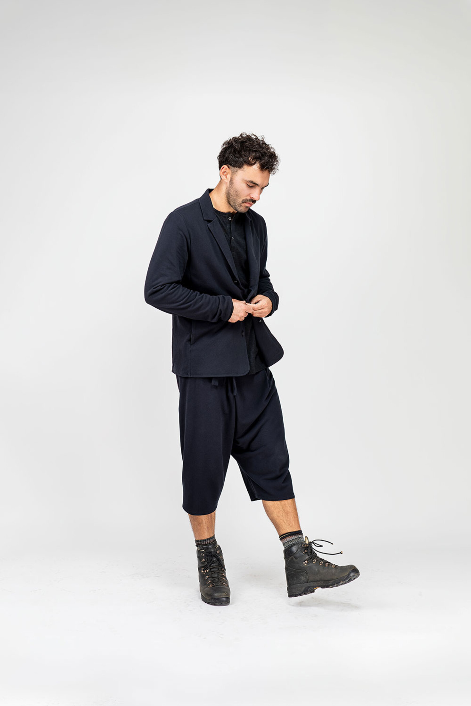 Lässig-leichte Baumwoll-Kombination aus Sakko und Wickelhose. Die Jacke ist auch in den neuen Farben Foggy Blue und Berner Sand erhältlich.