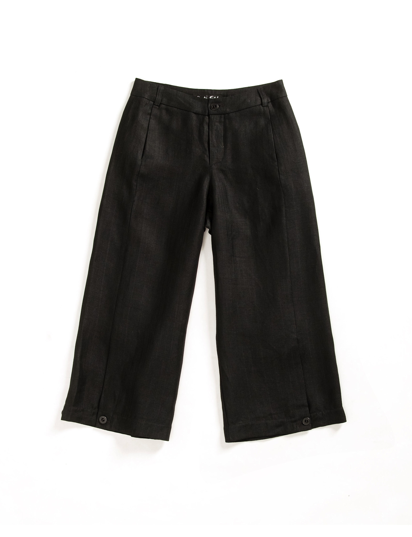 Weit geschnittene Unisex Hose mit geradem, langem Bein und je zwei Taschen hinten und vorne aus einem wunderbar weichen und schön fallenden Leinenmischgewebe.
