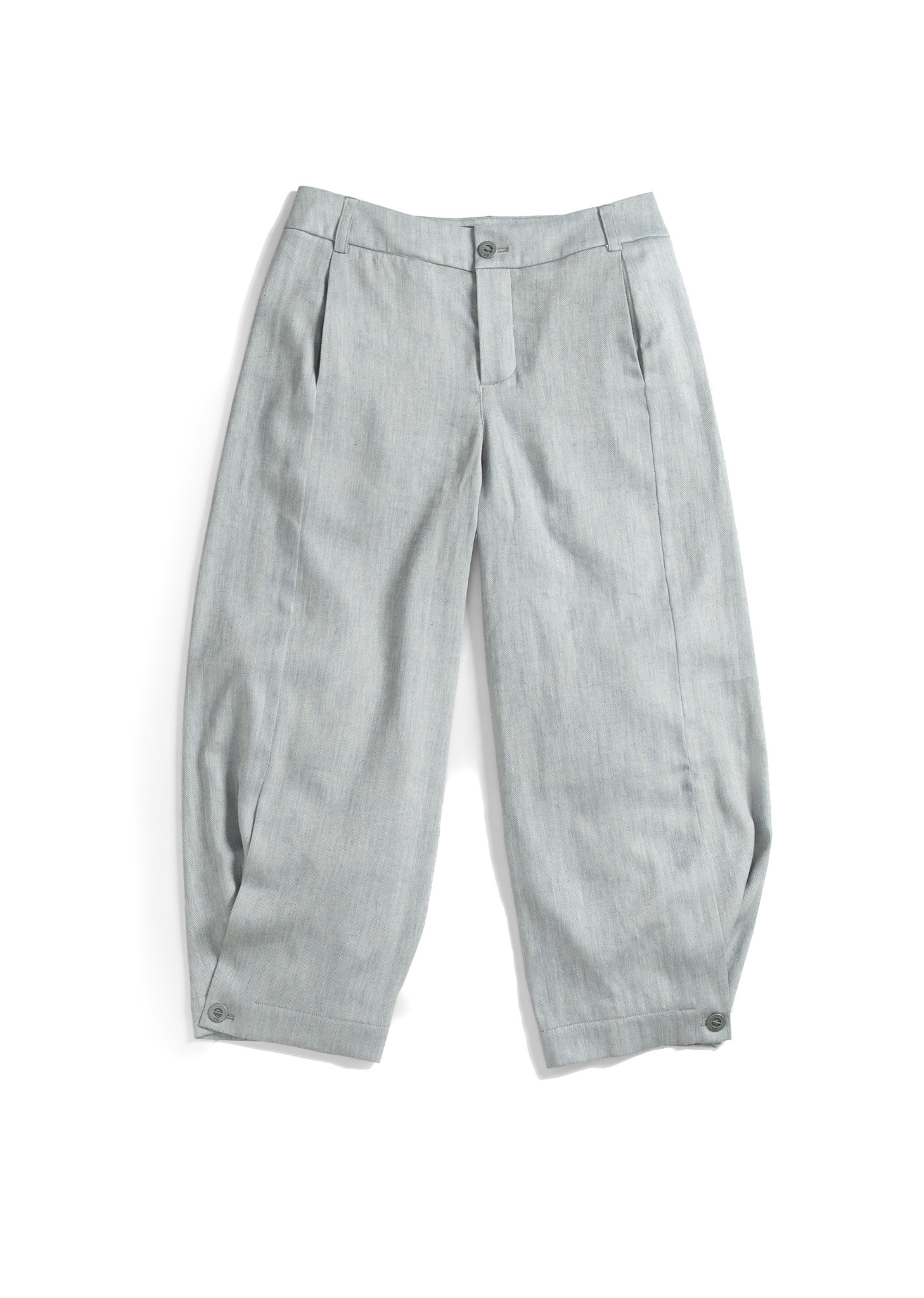 Weit geschnittene Drei-Bahnen Unisex Hose in 7/8 Länge aus einem wunderbar weichen und schön fallenden Leinenmischgewebe, welches sich äusserst zart über die Haut legt. Die Culotte hat insgesamt vier praktische Taschen und kann mal elegant mit geradem Bein und mal verspielt als Pumphose getragen werden. Es gibt für Mann und Frau passende Jacken dazu.