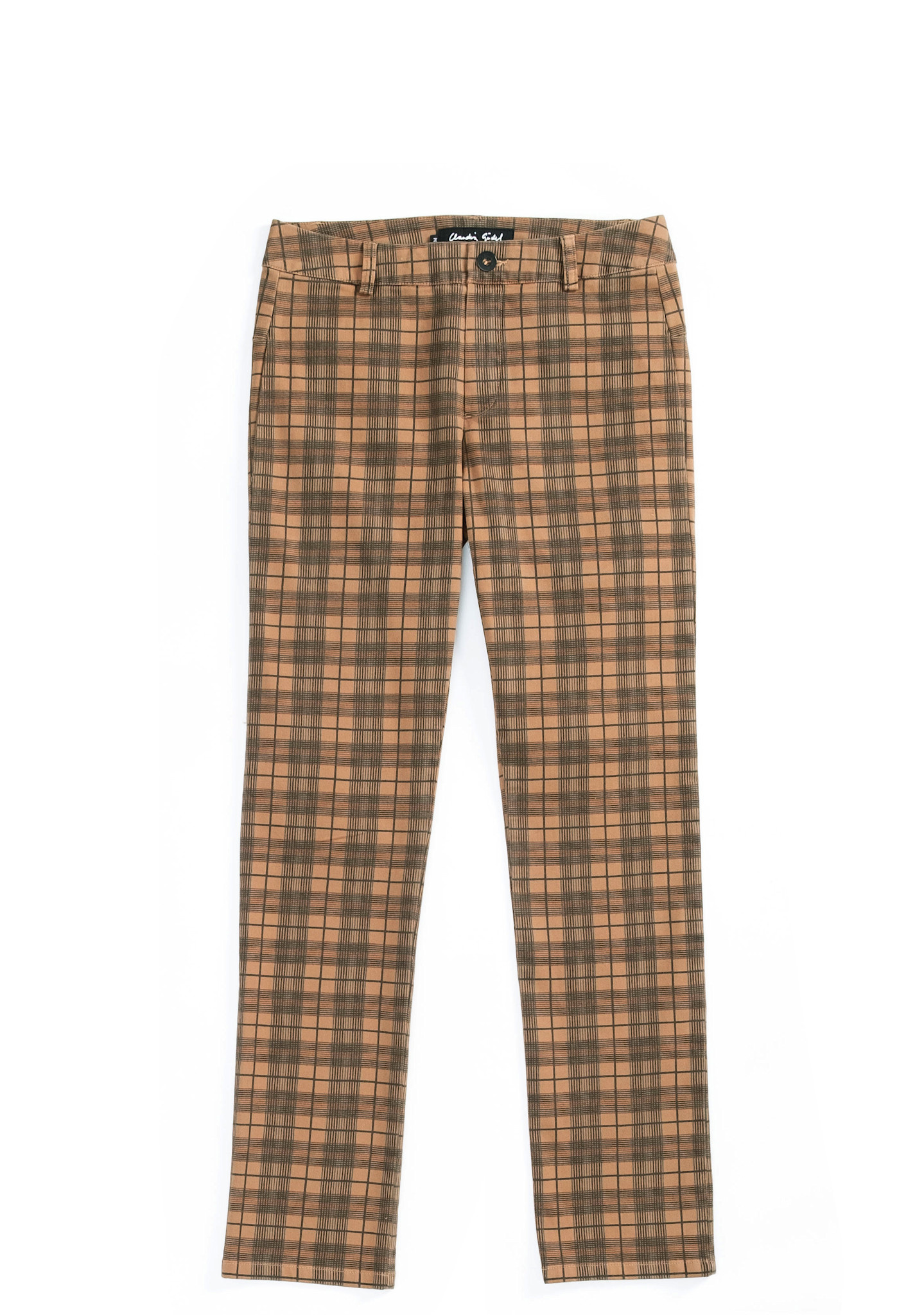 Schlichte, gerade geschnittene Hose mit idealer Passform für den Mann. Die coole Hose im Karo Look mit zwei Seitentaschen in der Naht und deren zwei hinten, ist aus unserem bewährten, leichten und anschmiegsamen Jeansgewebe mit Karodruck.