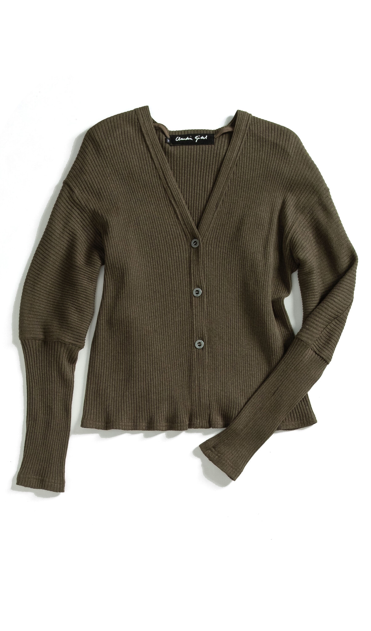 This cardigan for women is part of our Zero Waste series, with the fabric and its dimensions largely determining the cut. The pattern pieces fit together like a jigsaw puzzle, with one shape determining its counterpart, avoiding waste and creating something beautiful. The short jacket in ribbed knit made from a cosy cotton blend is pleasantly soft on the skin, practical to take with you and yet slightly warming when a cool summer breeze blows.