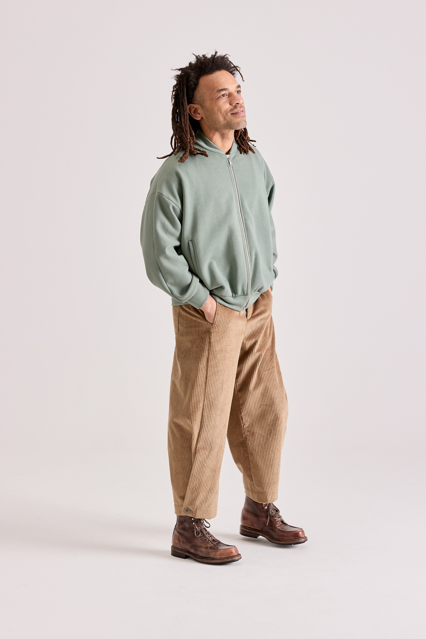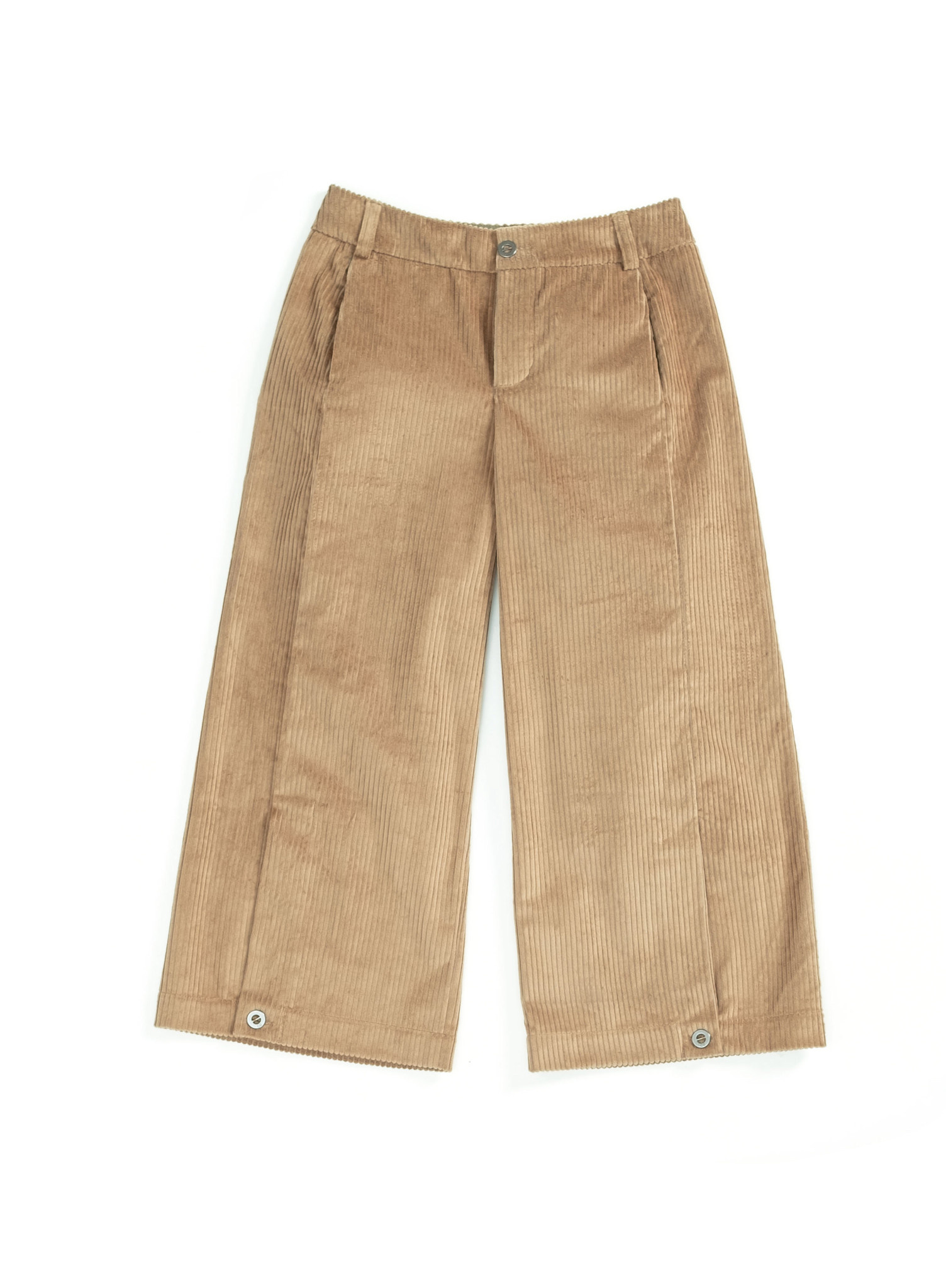 • Wide-cut three-panel unisex trousers in 7/8 length made from soft cotton corduroy. They have a total of four practical pockets and can be worn elegantly with a straight leg or playfully as bloomers.