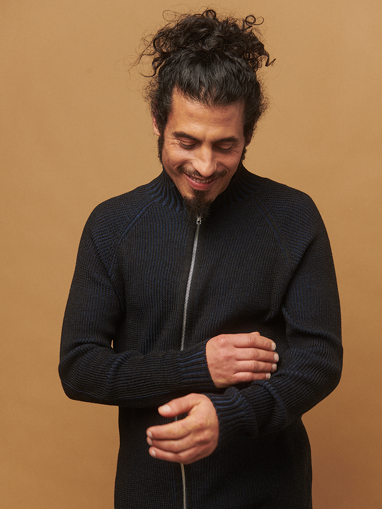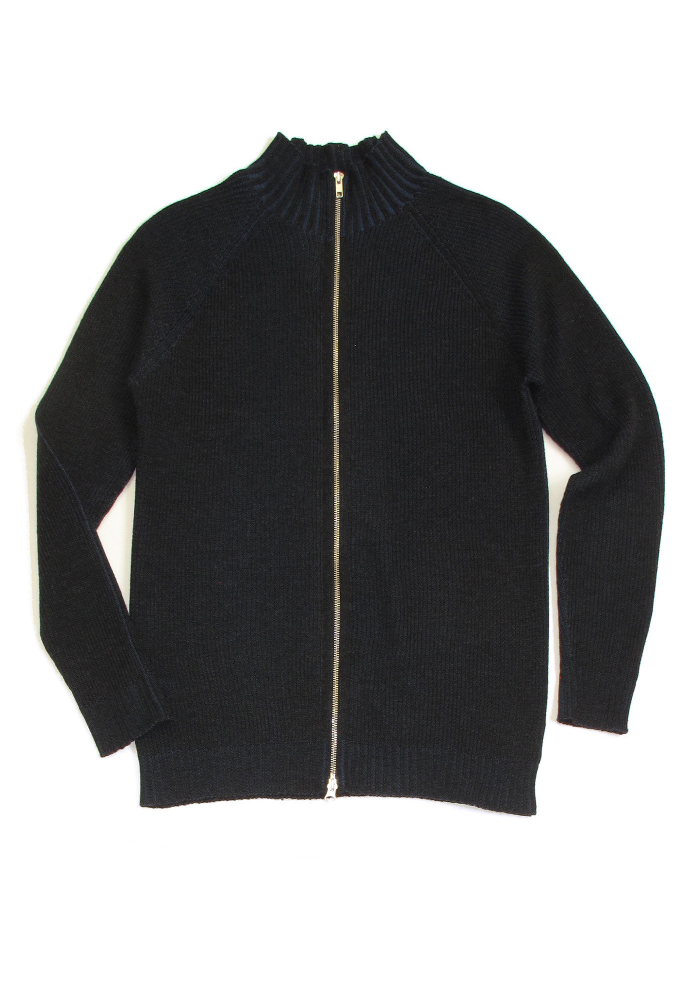 Wonderfully soft unisex cardigan with a front zip and stand-up collar, from the knitting series in collaboration with Mr. Urs. Urs Landis knits the finest merino wool from Germany for us in Turgi using a special 3D knitting process to create cuddly, seamless unisex jumpers, jackets, hats, scarves and dresses.