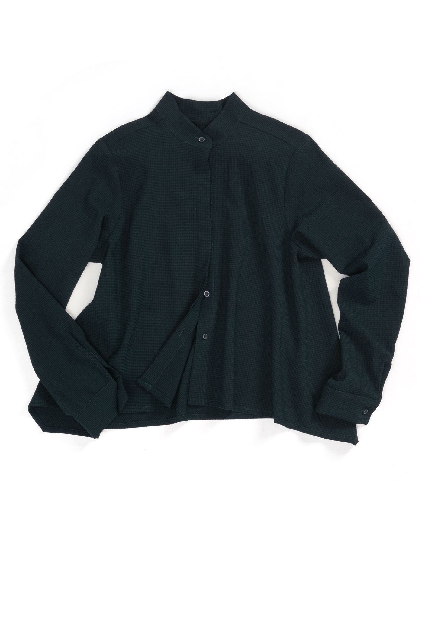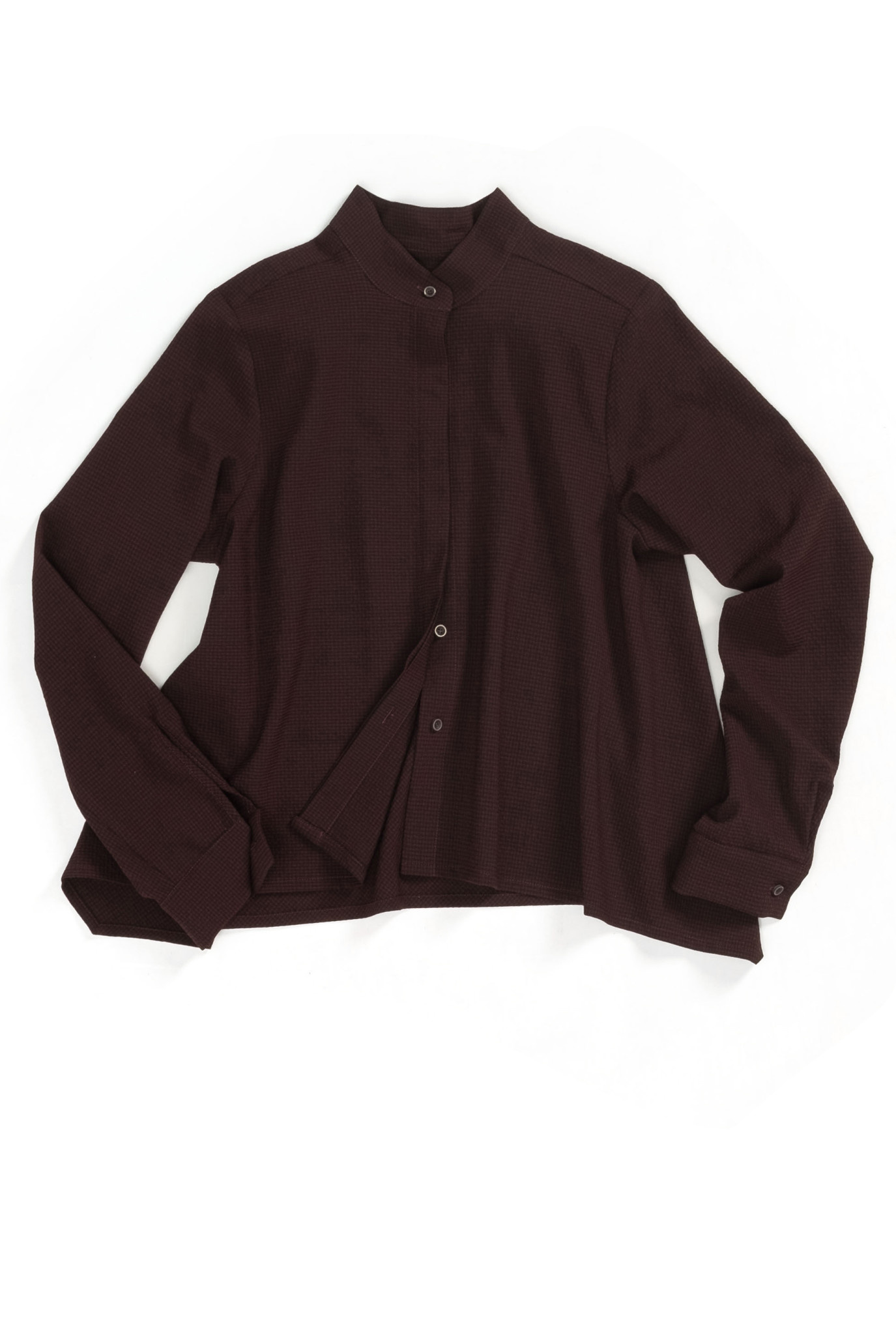 Short, playful O-shaped blouse without side seams made from a soft, crease-resistant and non-iron seersucker fabric.