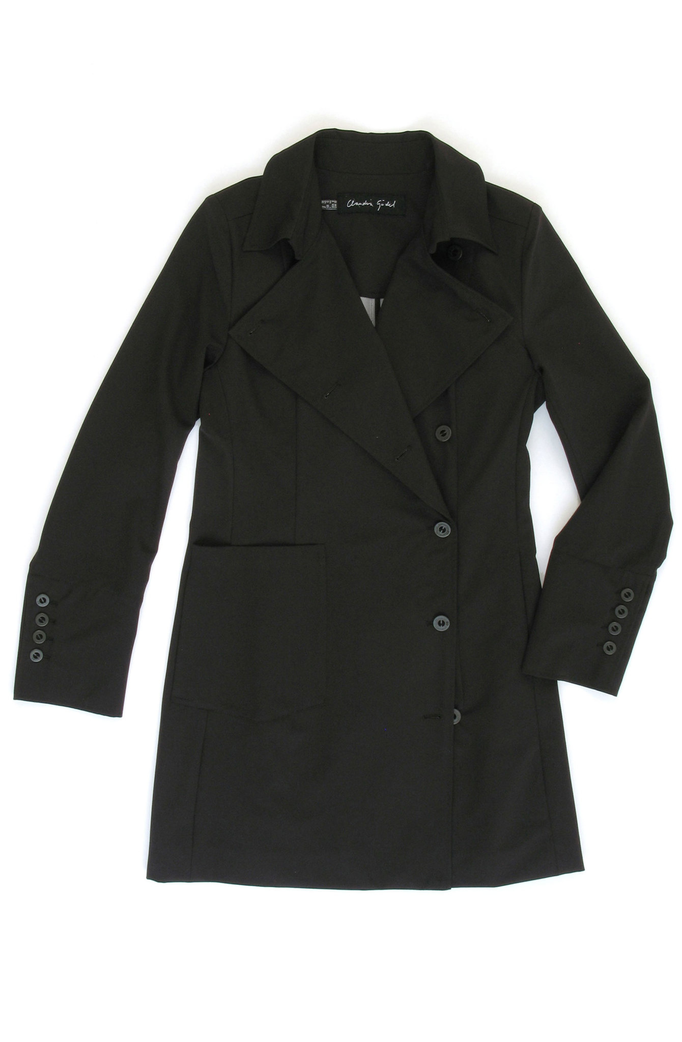 Elegantly fitted raincoat with side button fastening, two pockets on the side, one sewn-on pocket at the front and one breast pocket on the inside. The classic with a walking slit at the back and buttoned-through cuffs made of the breathable functional material with membrane by Schoeller (CH) provides optimal protection against rain and also ensures a balanced body climate.