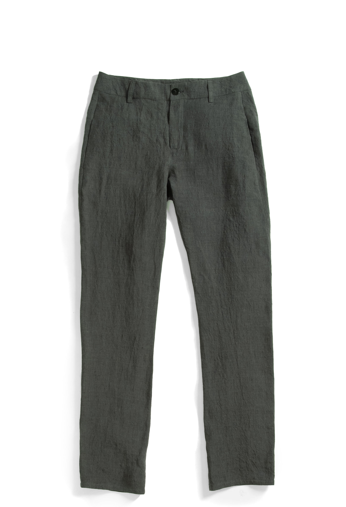 Simple, straight-cut trousers with an ideal fit for men, which also suit many women perfectly. These classically elegant trousers with two pockets in the front side seam and two at the back are made from a wonderfully lively and richly textured linen fabric. There are matching jackets for men and women.