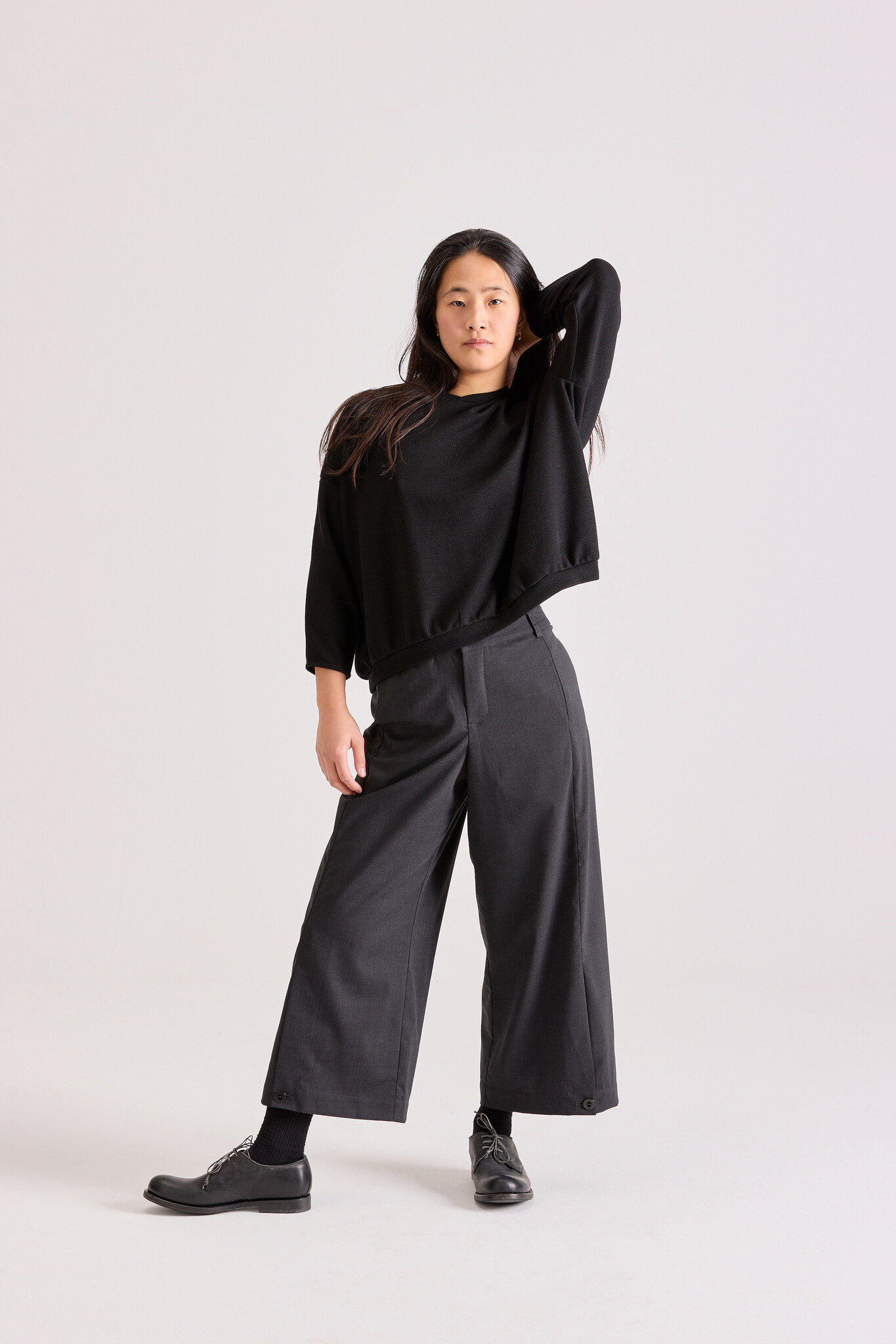 • The short jumper comes from our Zero Waste line, where care is taken to produce zero to minimal fabric waste. This cosy, simple top for women is made from a wonderfully light and soft wool-blend knit.